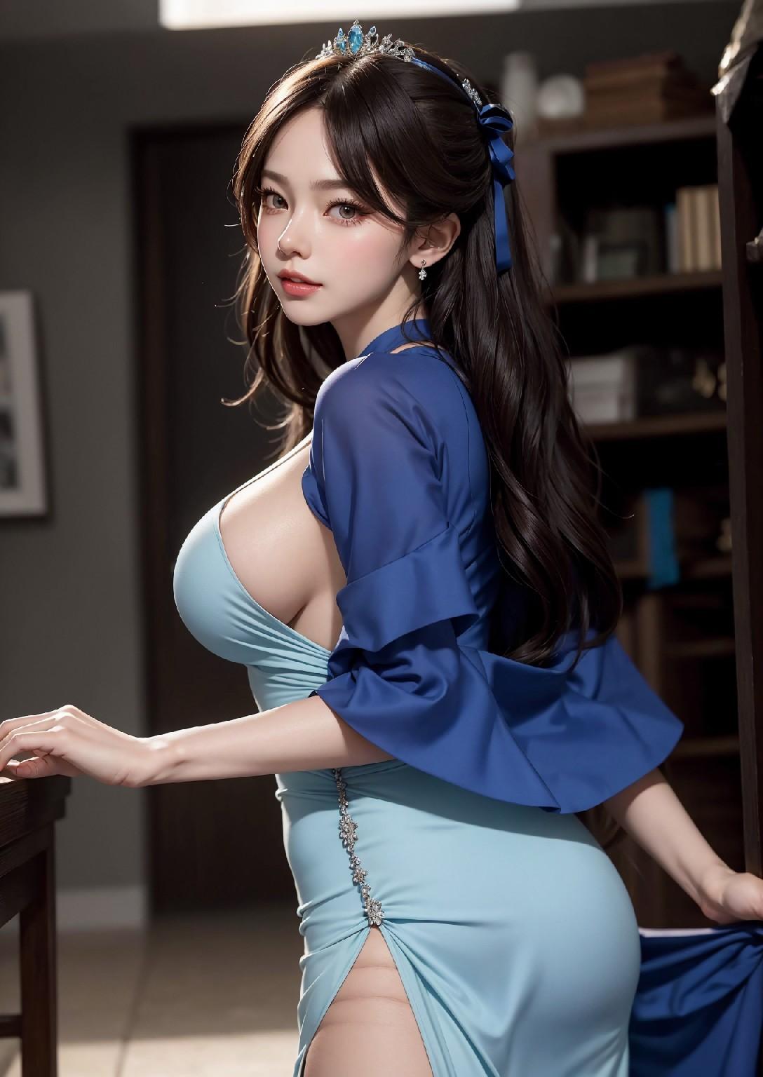 蓝色洋装的女孩
