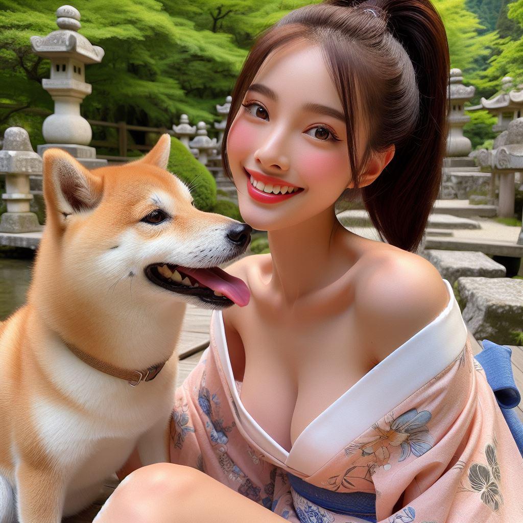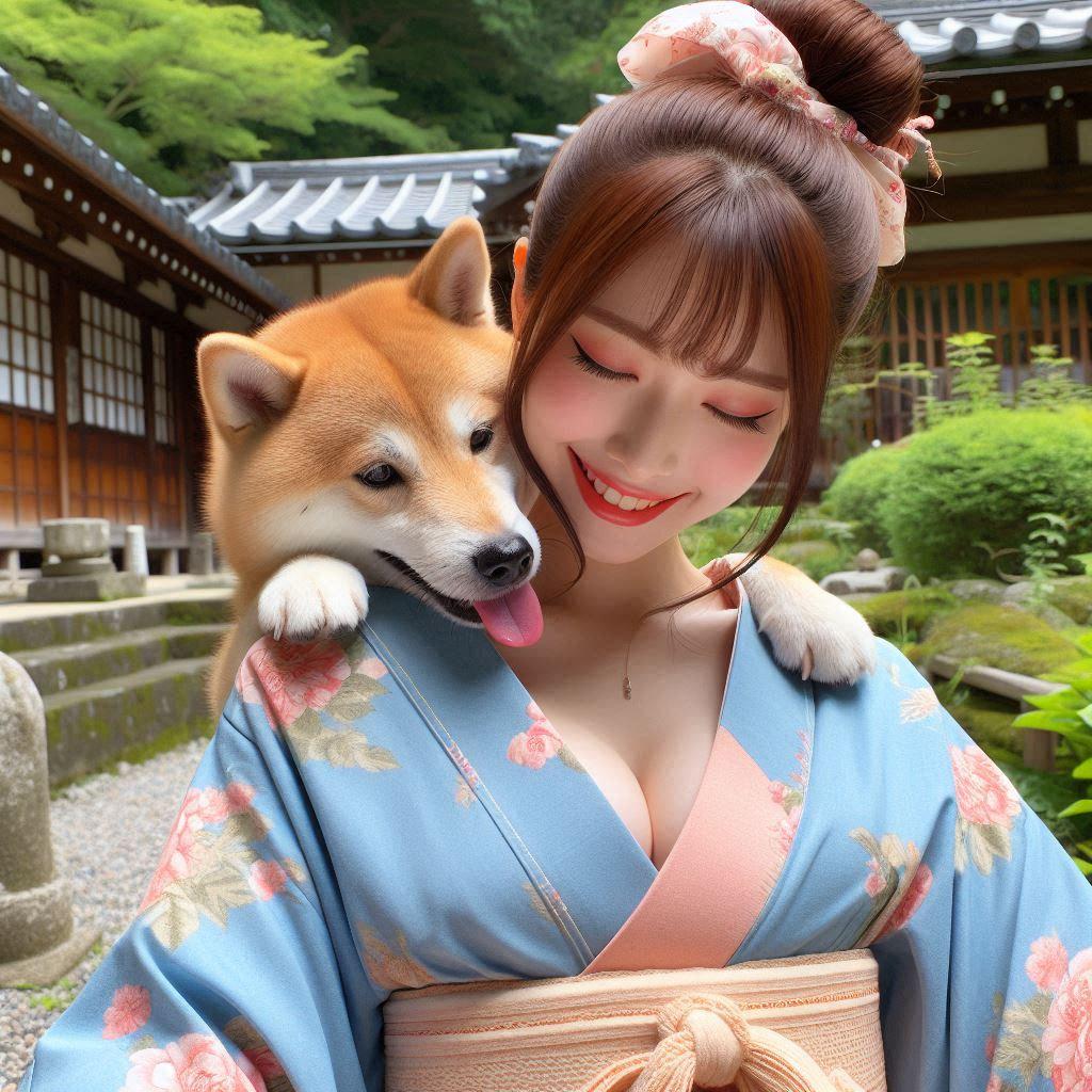 和服美女与爱犬
