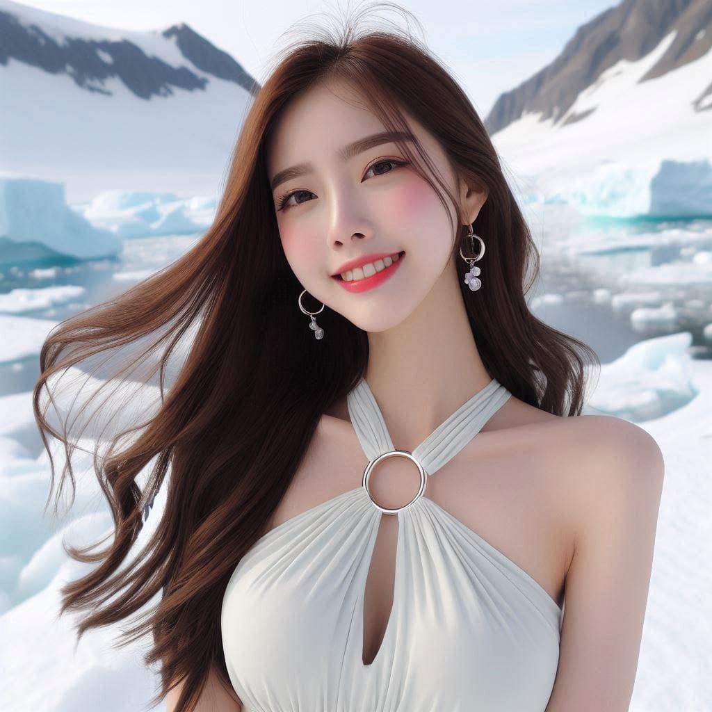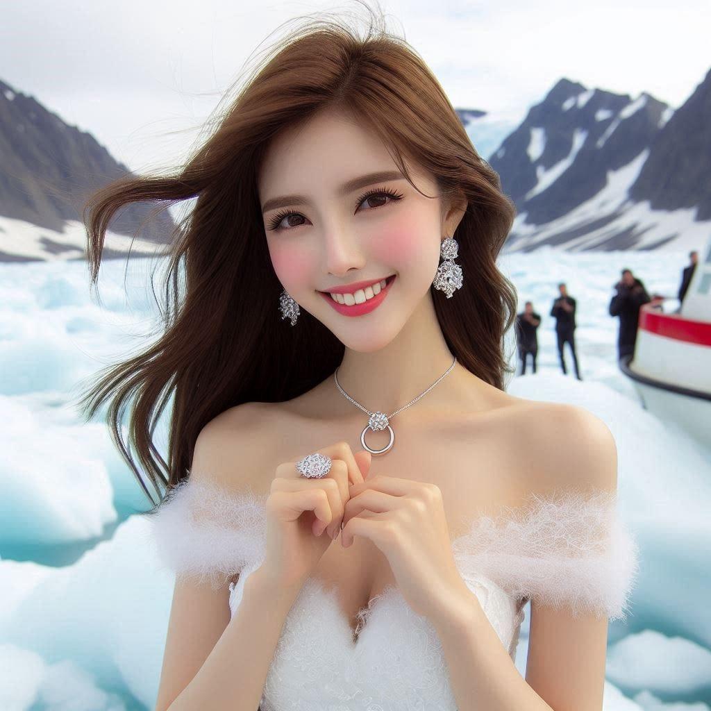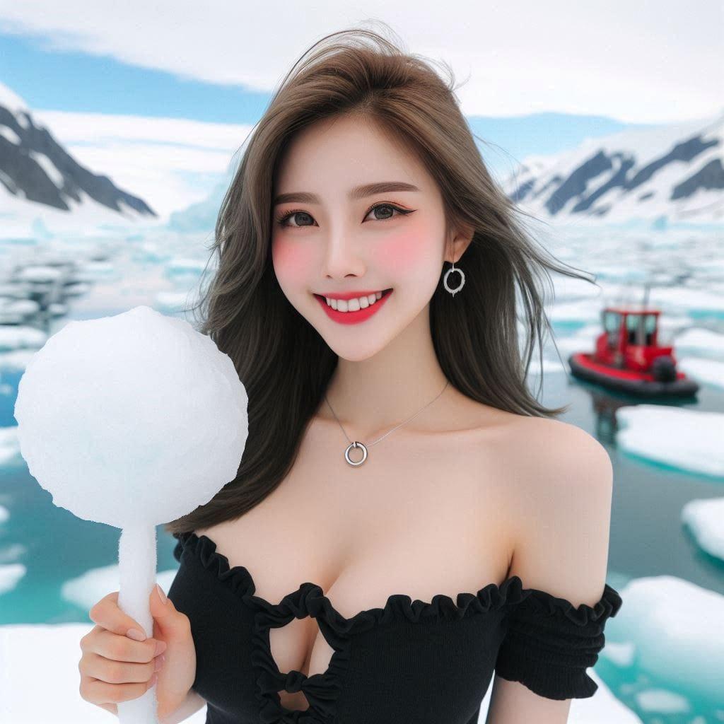 妹子觉得热.去冰山清凉消暑一下
