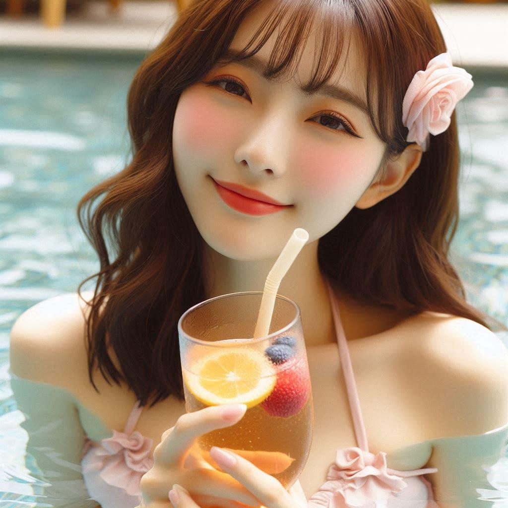 炎热的天气.泳装.冰凉饮料