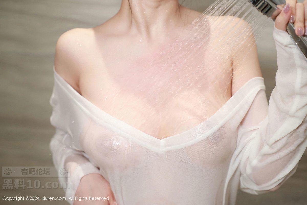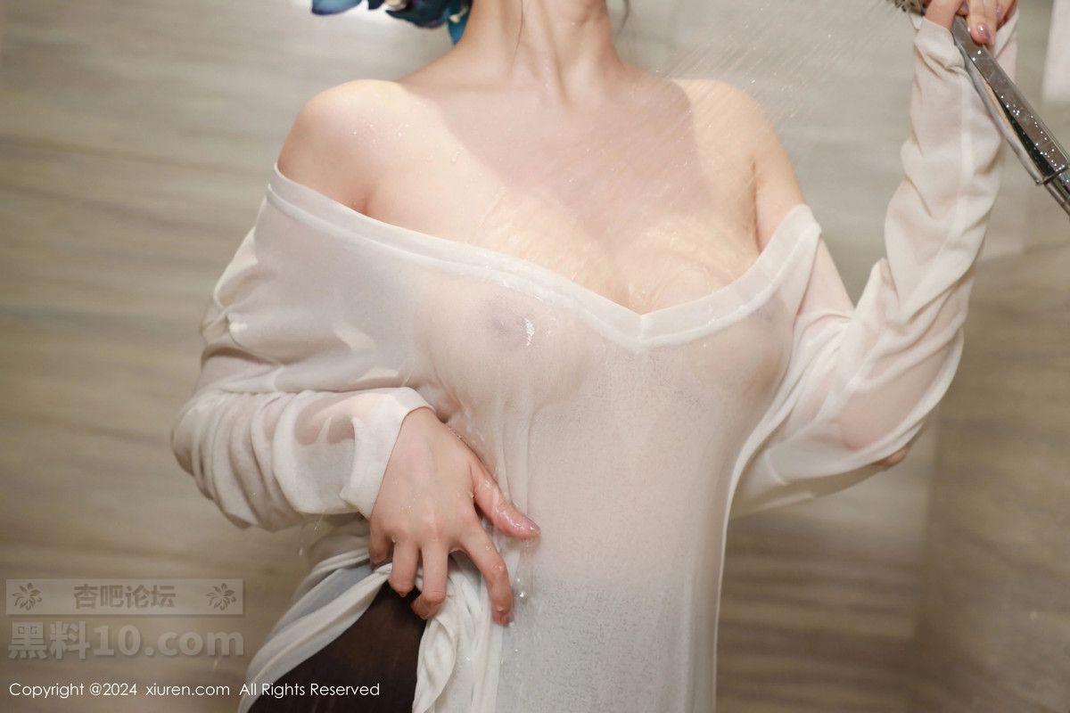 模特唐翩翩私房性感白色轻透上衣配开档黑丝秀完美身材诱惑写真