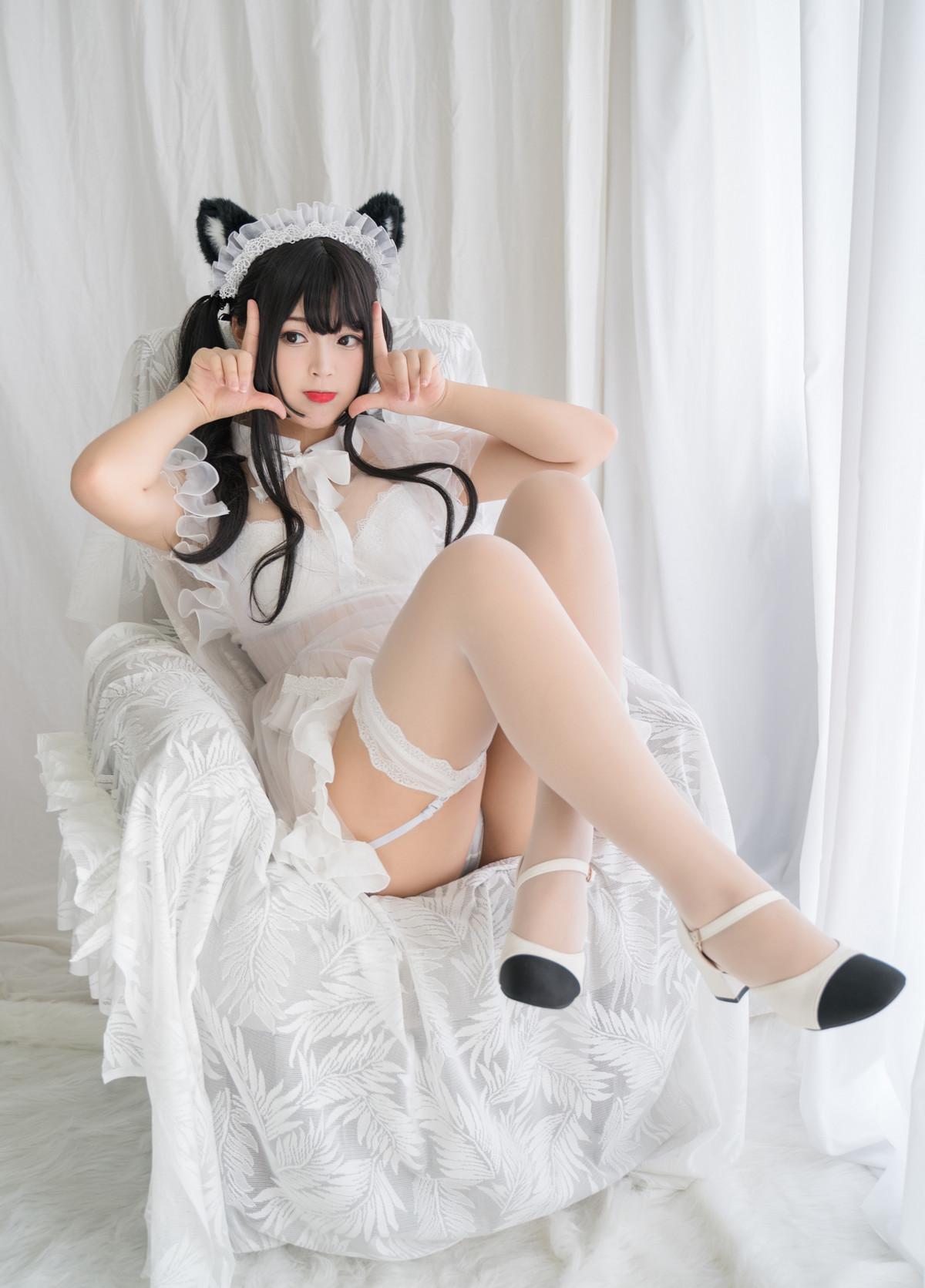 萌系小姐姐白烨白猫透明女仆主题性感白色透明女仆裙配白丝吊袜秀丰满身材诱惑写真