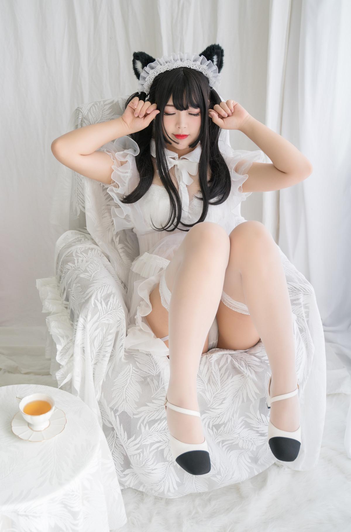 萌系小姐姐白烨白猫透明女仆主题性感白色透明女仆裙配白丝吊袜秀丰满身材诱惑写真