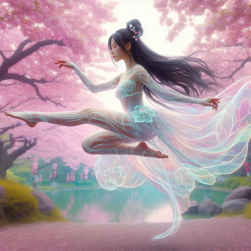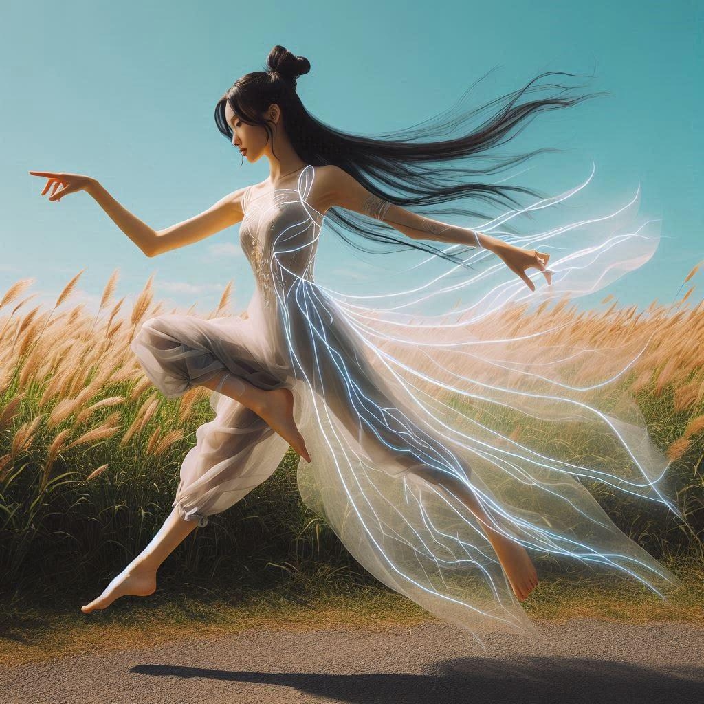 透明萤光线条汉服