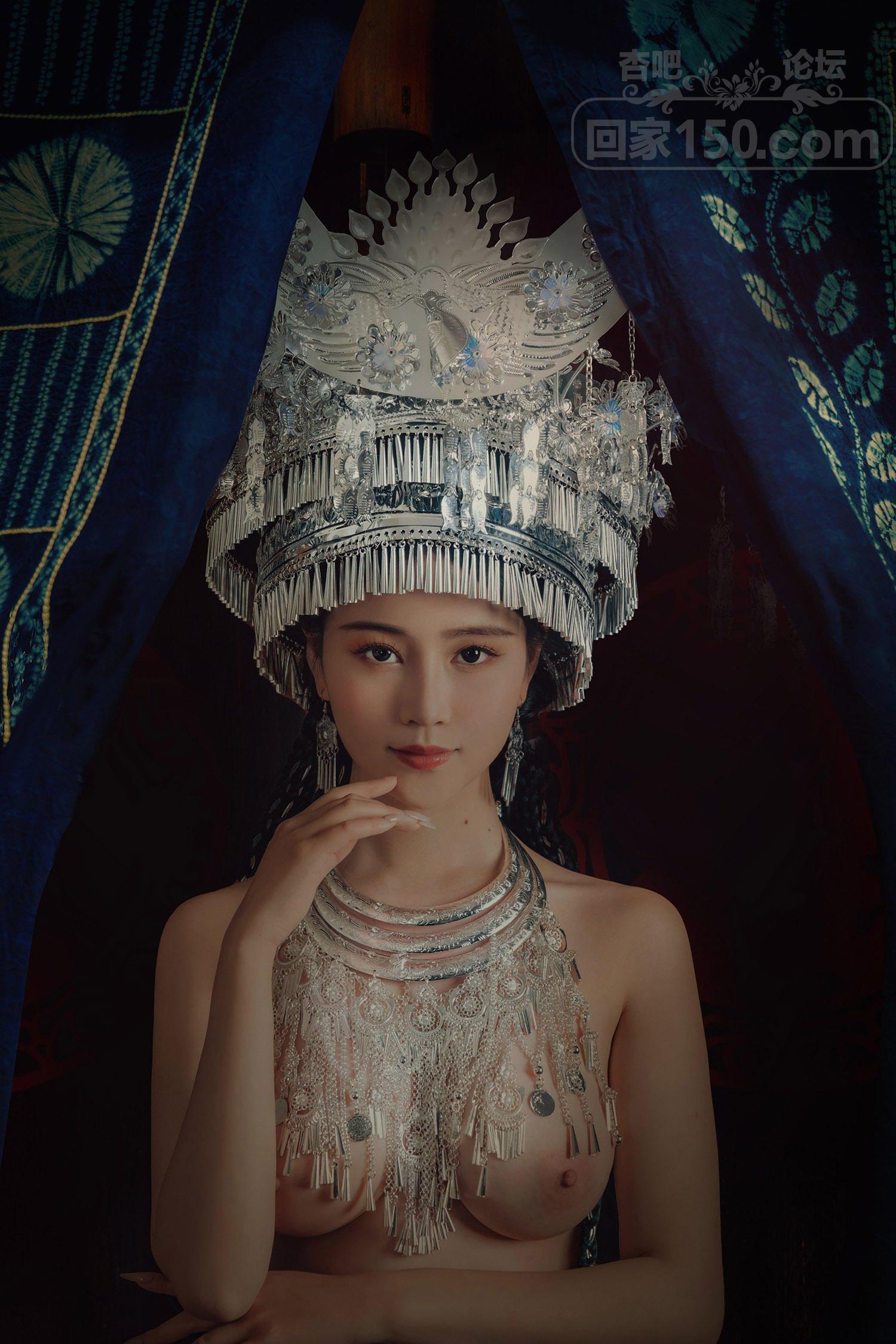 年年 苗疆少女写真 穿著少数民族的服饰 露著坚挺雪白的玉乳 真是骚到家了