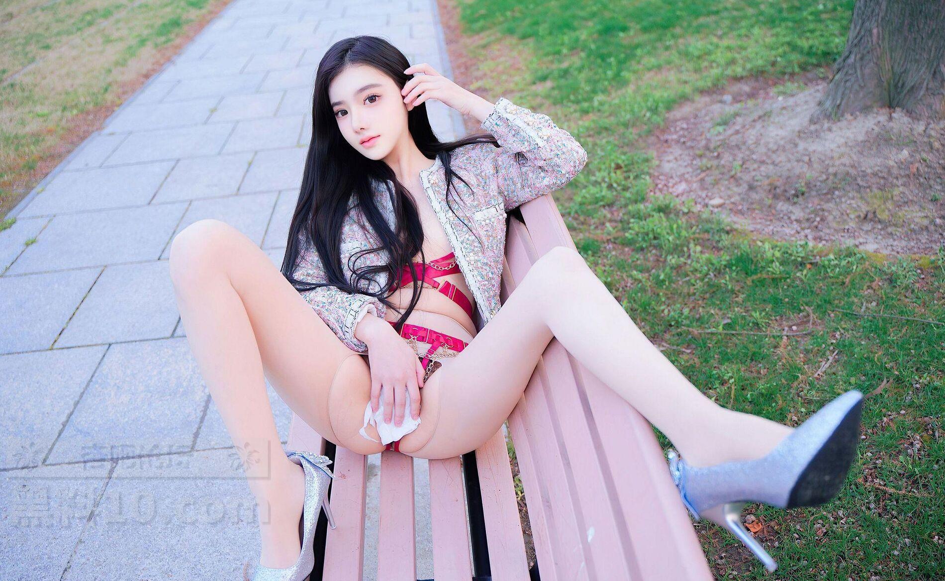 秀人网嫩模龙雪儿户外公园长条椅上粉红情趣肉丝袜色诱