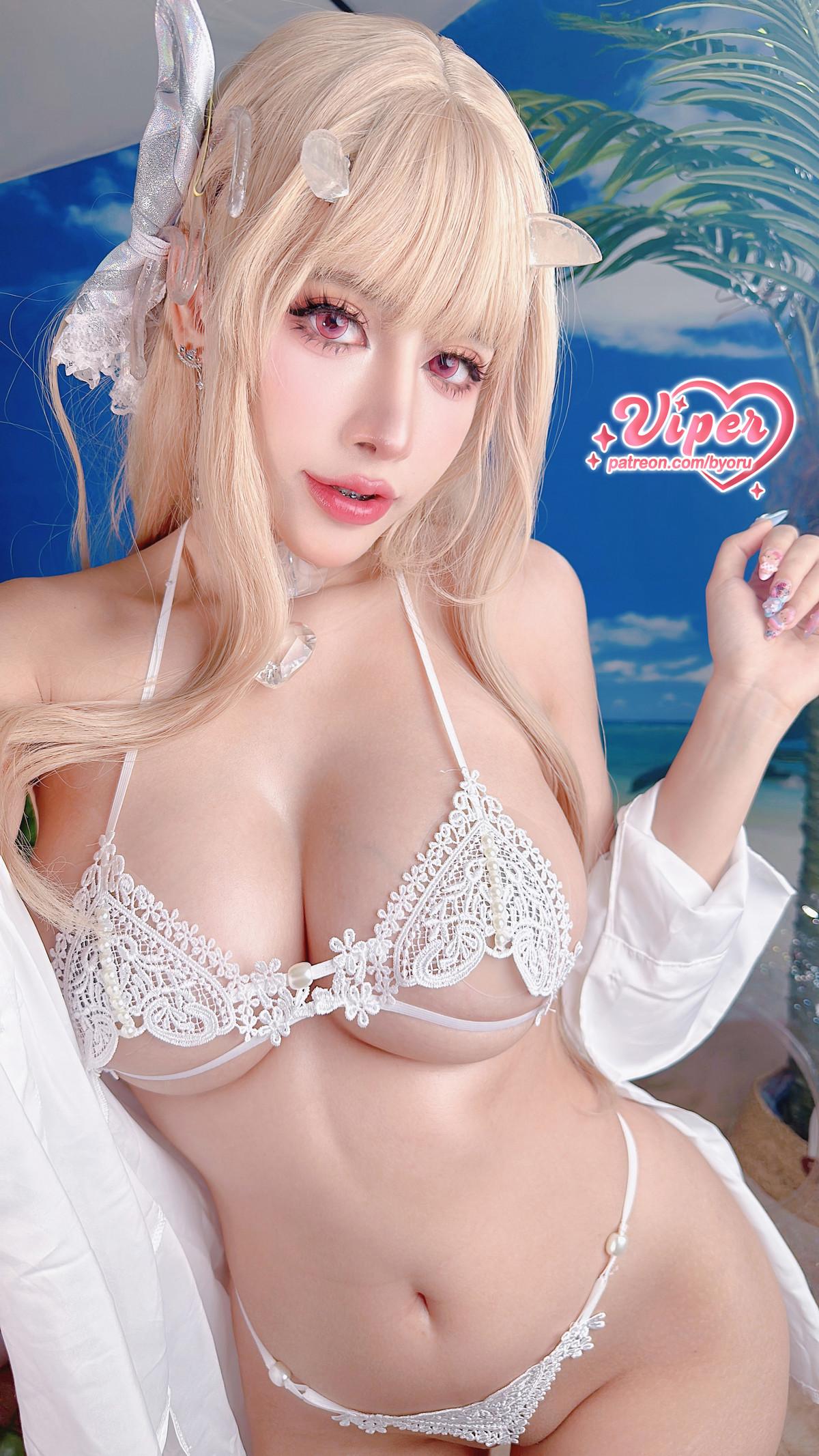 日本性感萝莉Byoru-Viper Summer主题沙滩椅上性感白色情趣内衣秀完美身材诱惑写真