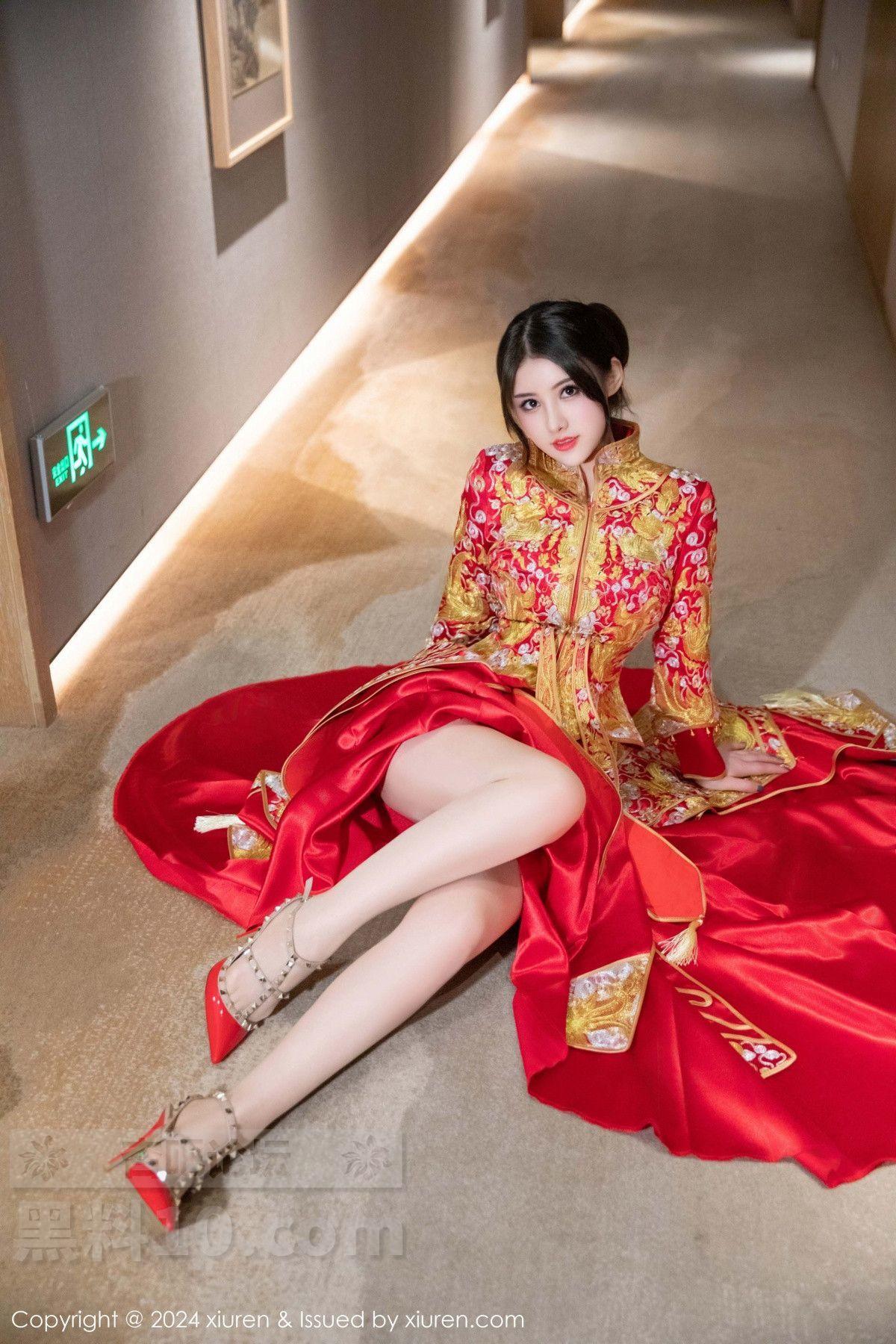 模特诗诗kiki性感红色新娘服饰露红色内衣秀惹火身材诱惑写真
