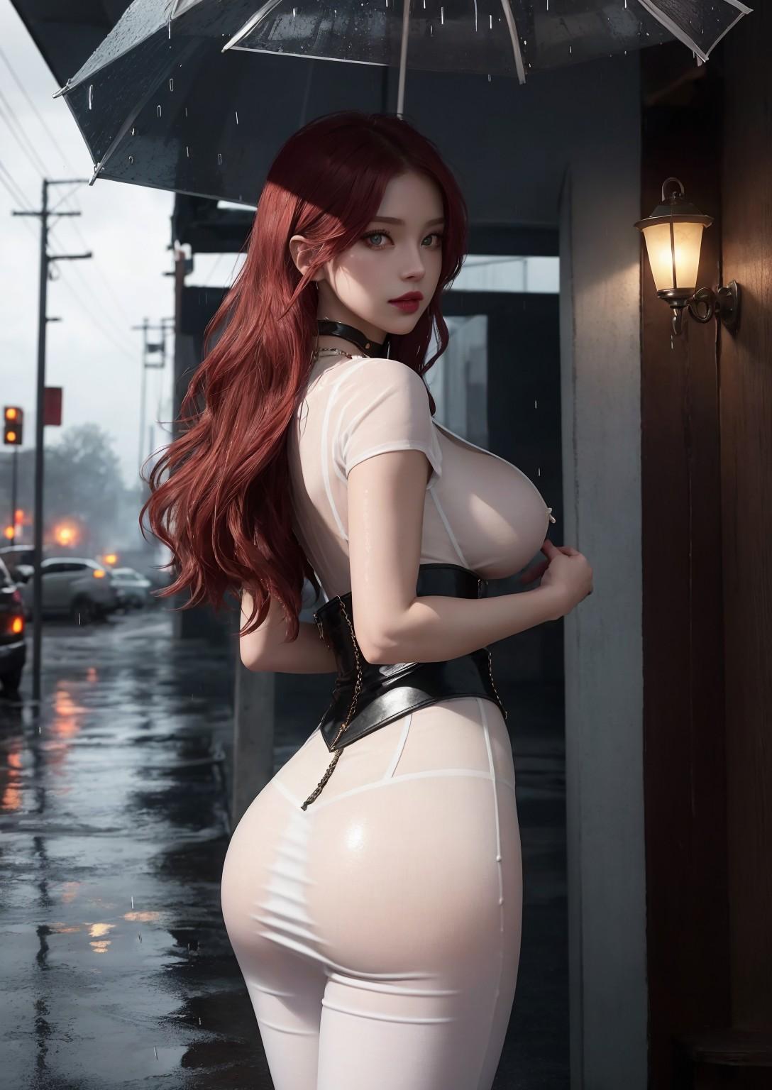 女巫猎人在雨中行走
