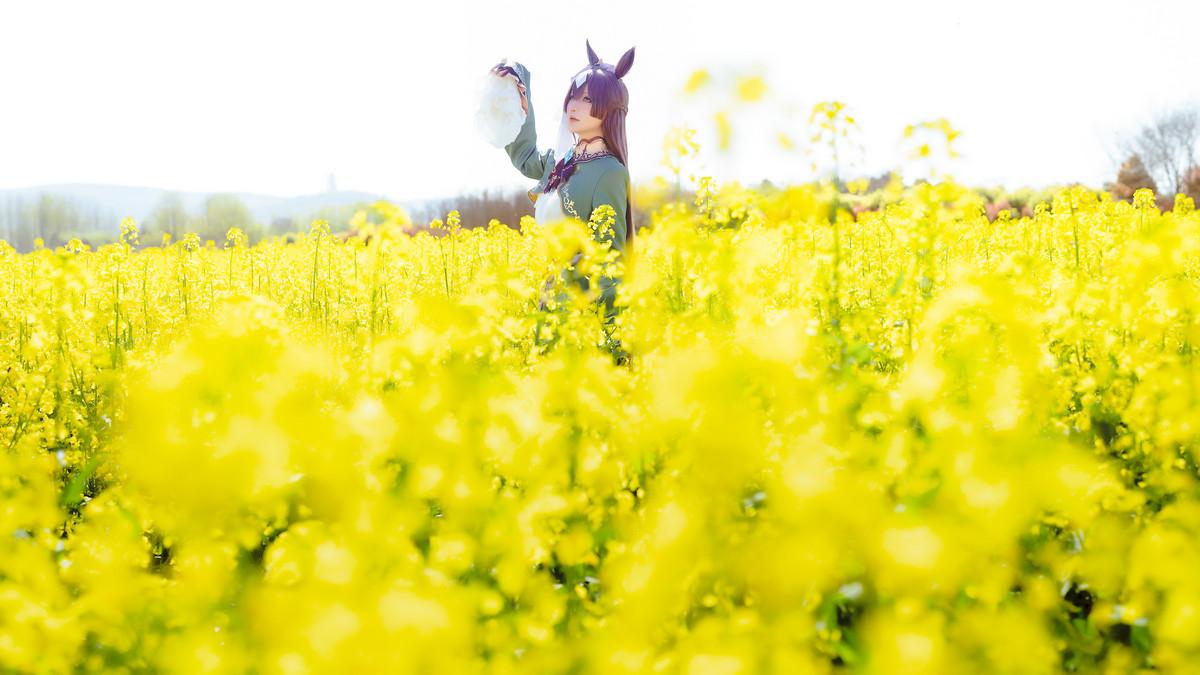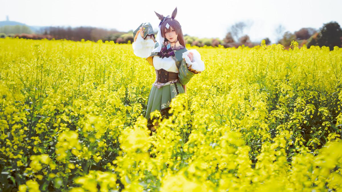 Coser小姐姐星之迟迟里见光钻梦想的回应主题油菜花地性感连衣长裙配黑丝袜迷人写真
