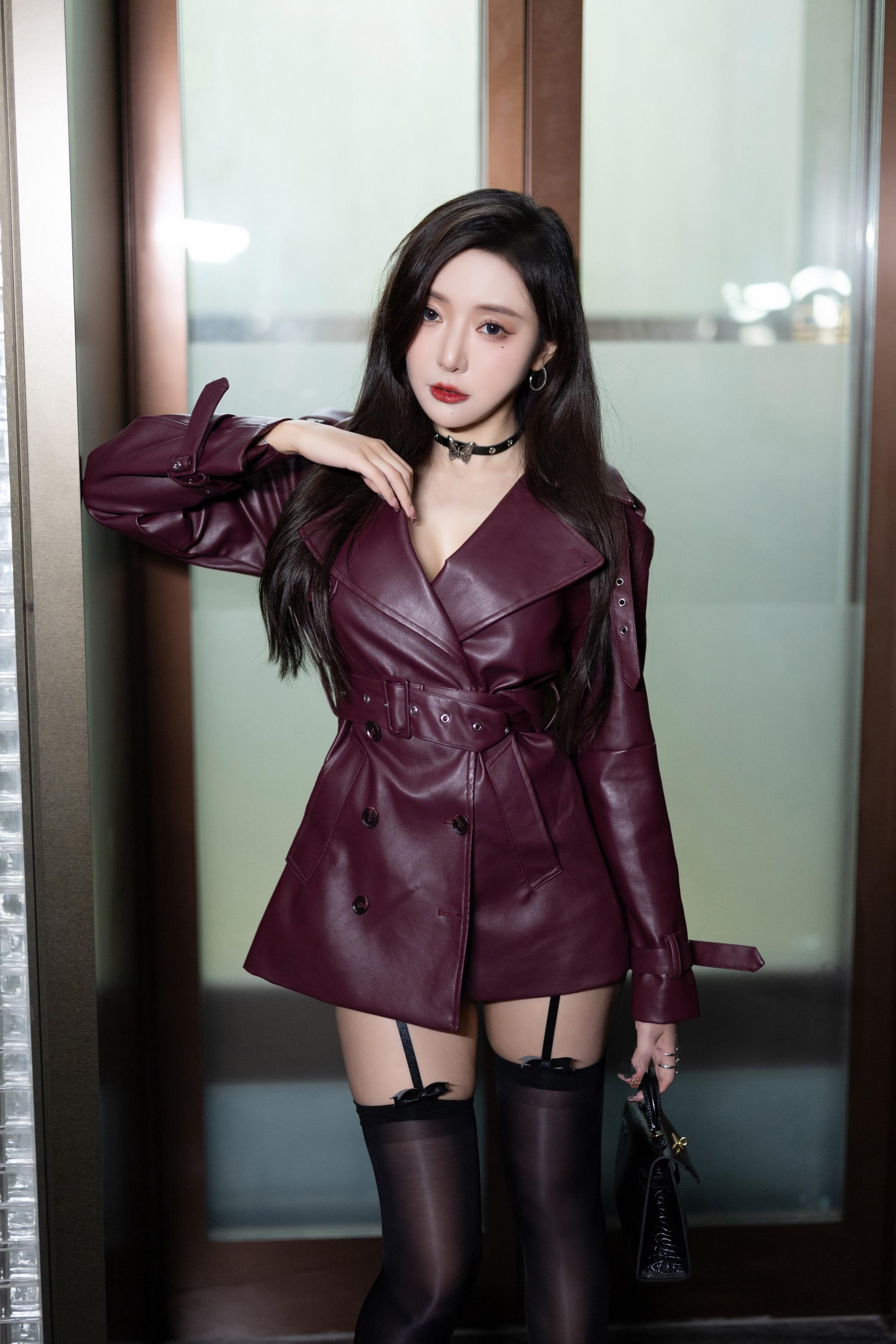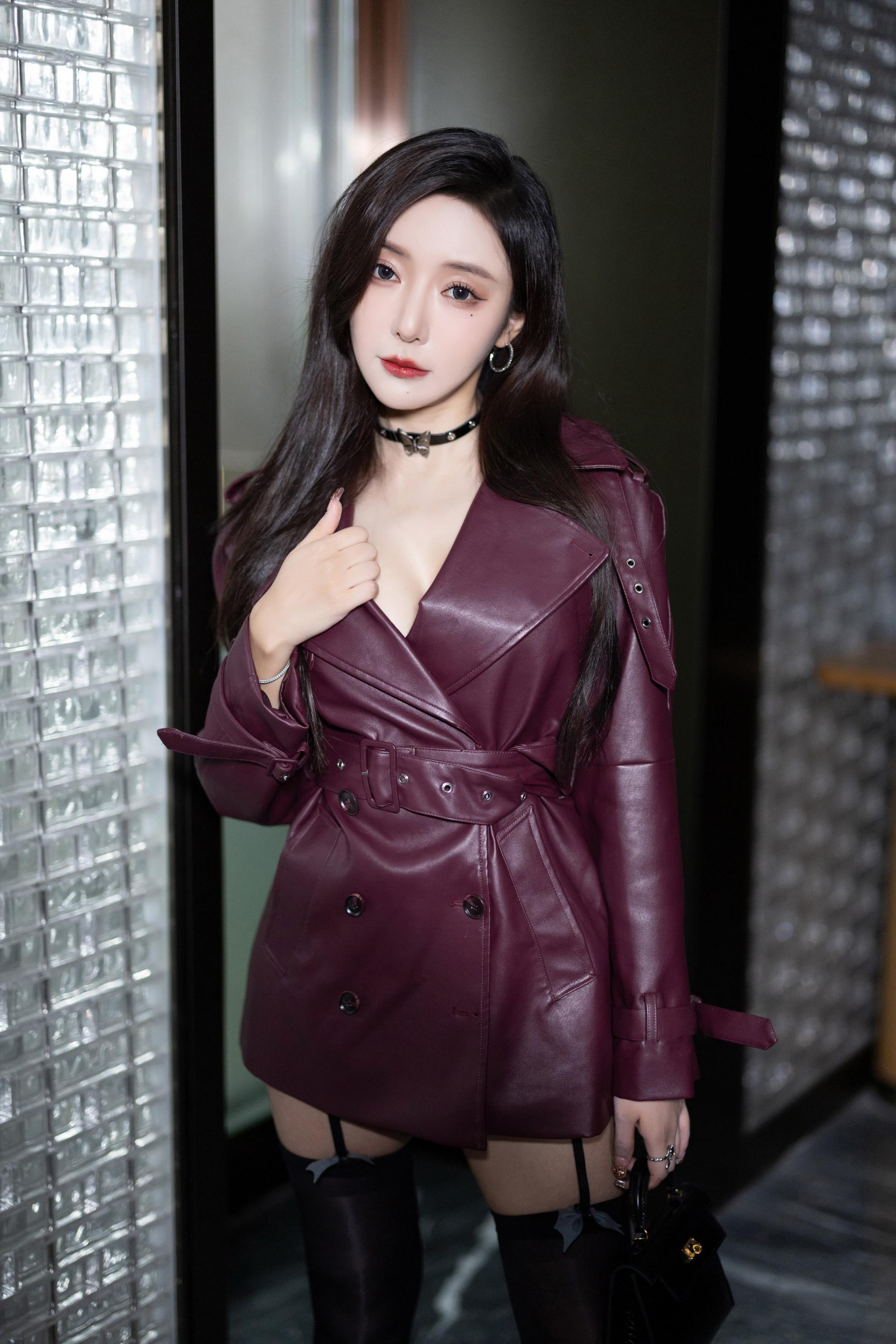 王馨瑶 紫色皮衣