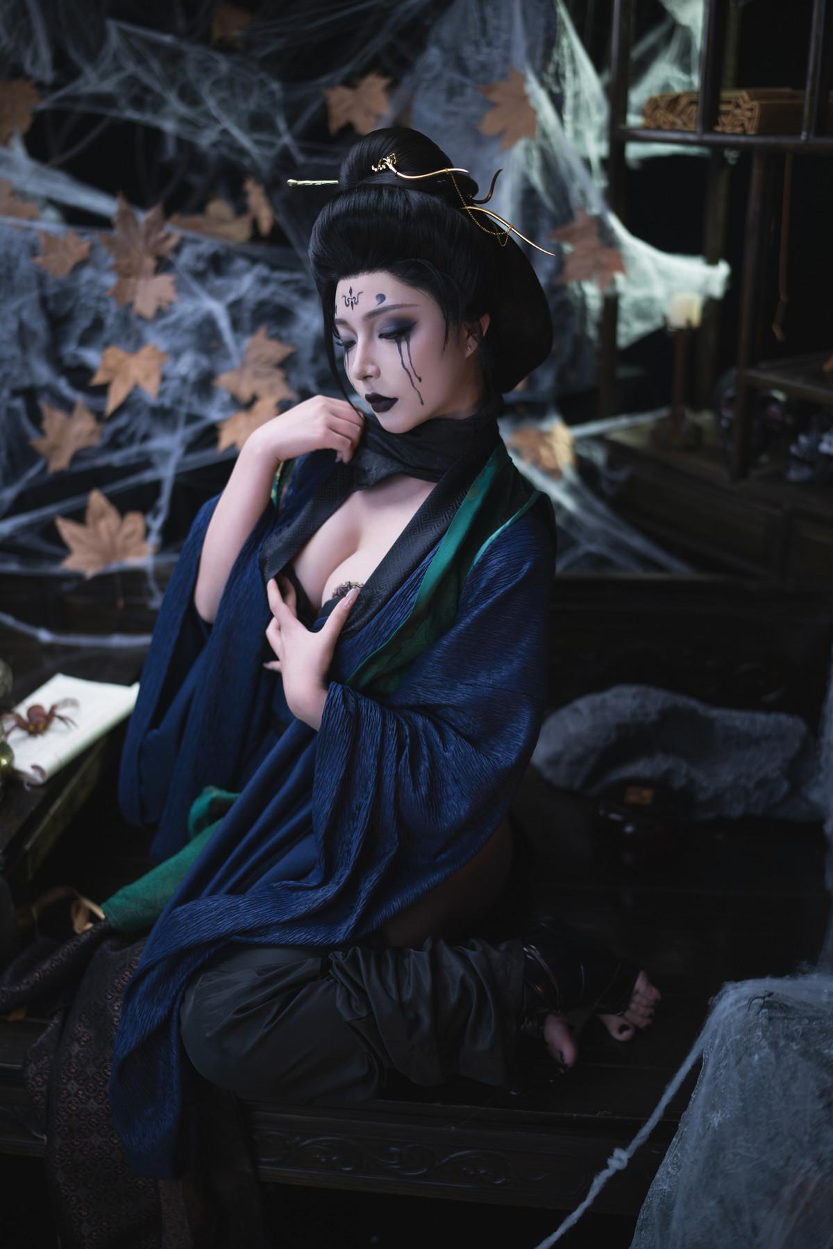 网络美女Yuuhui玉汇黑神话·四妹主题半脱露性感黑色内衣秀油亮肌肤惹火身材诱惑写真