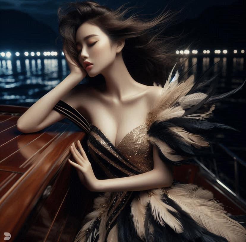 感觉妹子晕船了.姿势真的很撩人