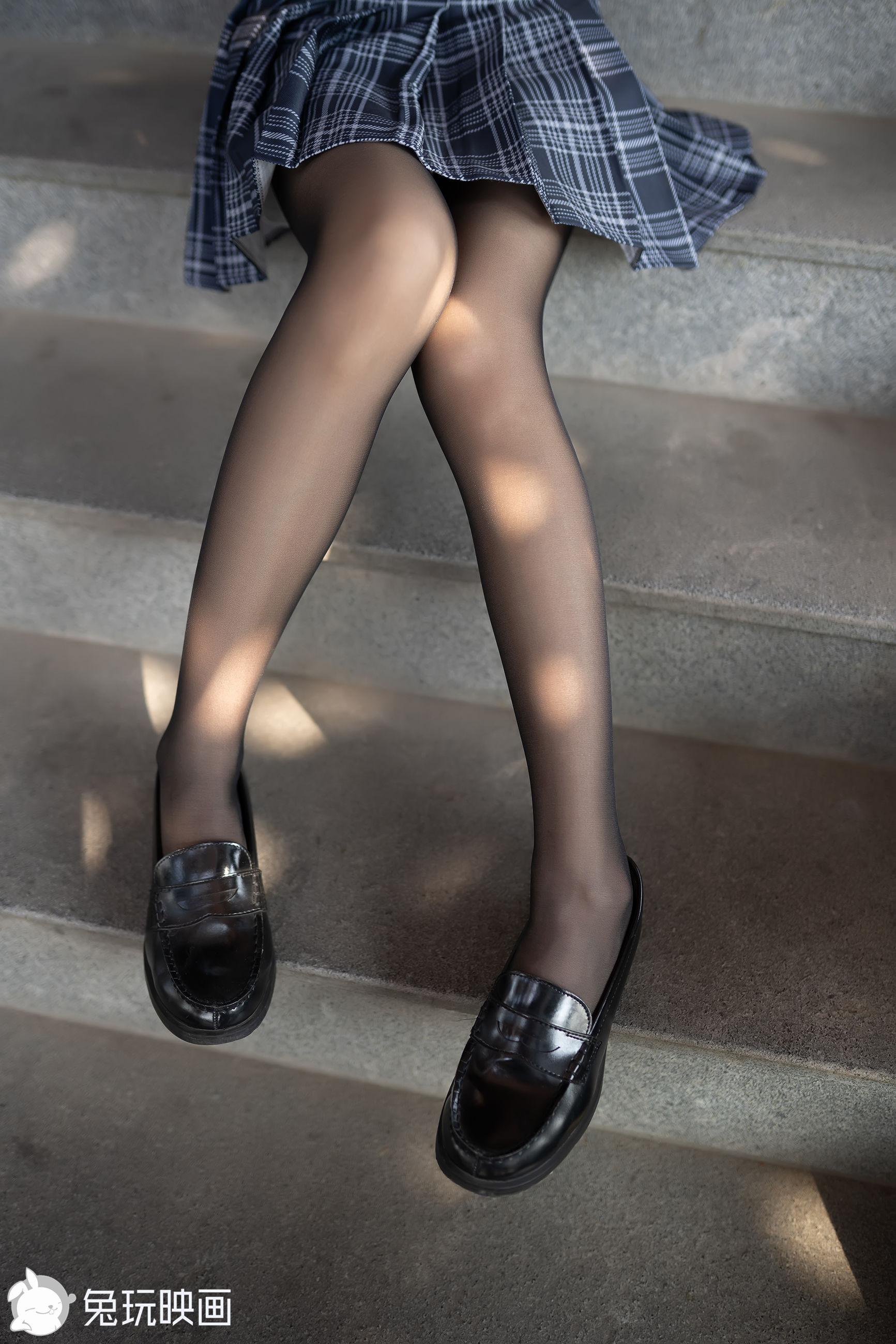 [兔玩映画] - 蓝色苏格兰裙的黑丝包头鞋