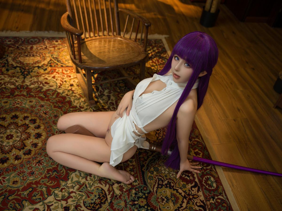 网络美女桜井甯甯葬送的芙莉莲白菲伦主题性感白色真空礼裙秀翘臀美腿撩人诱惑写真