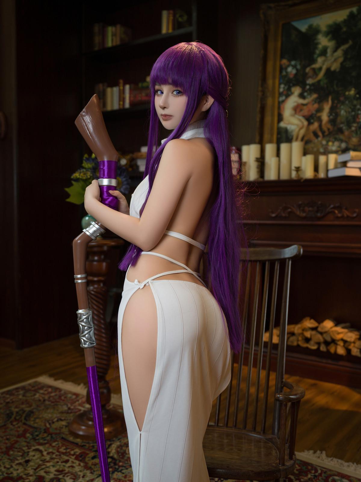 网络美女桜井甯甯葬送的芙莉莲白菲伦主题性感白色真空礼裙秀翘臀美腿撩人诱惑写真