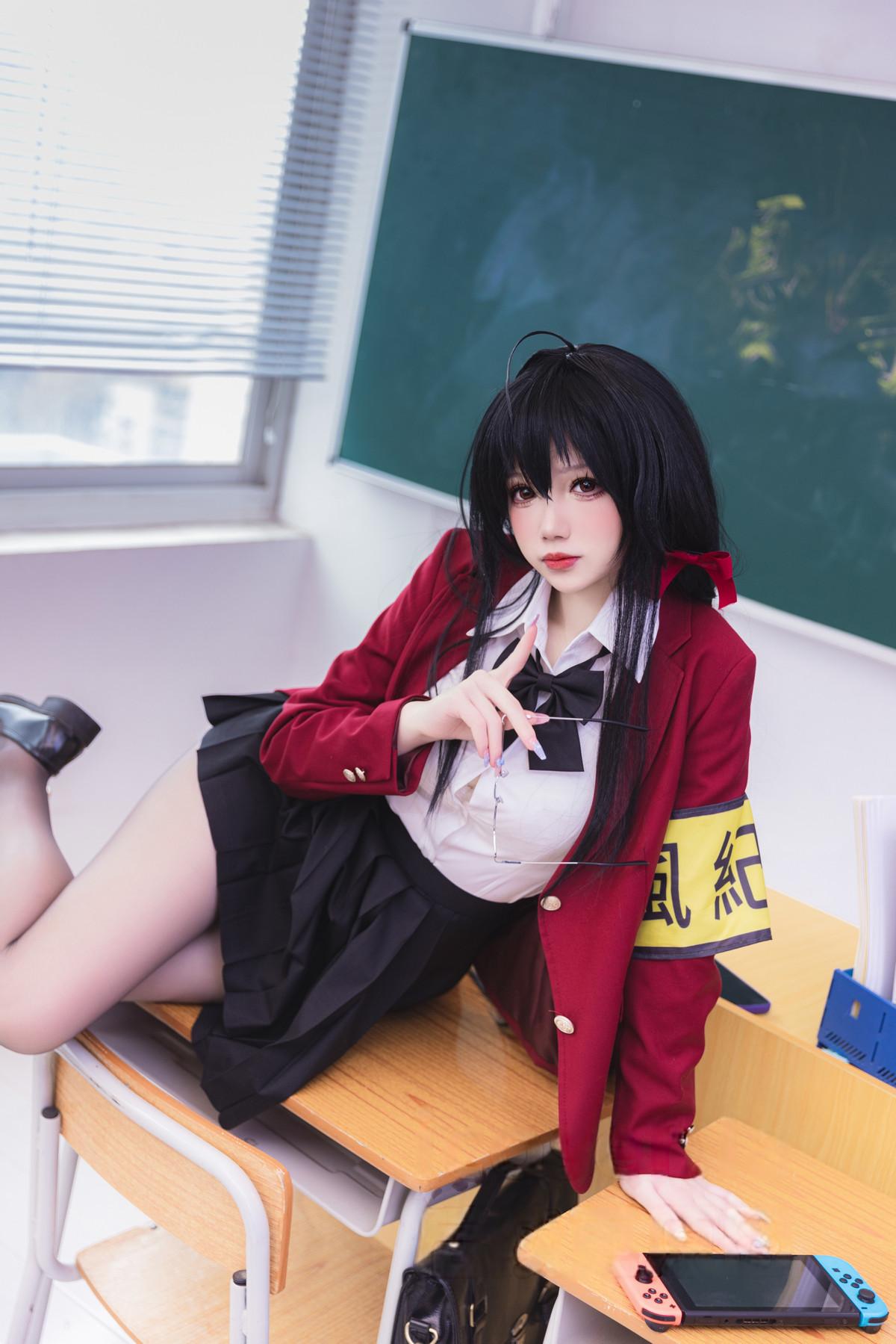动漫博主雪晴Astra碧蓝航线风纪委员主题性感学生制服露白色内衣配黑丝袜秀美腿诱惑写...
