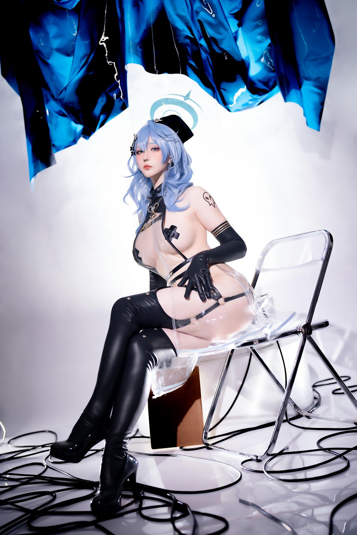 Coser小姐姐星之迟迟天雨亚子主题性感黑色情趣护士服配黑皮吊袜秀惹火身材诱惑写真