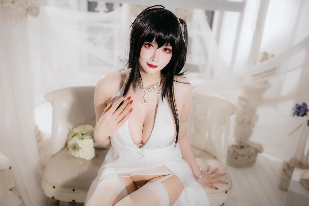 Coser美女兔胖胖min大凤花嫁主题私房性感白色情趣薄纱配白丝吊袜秀惹火身材诱惑写真