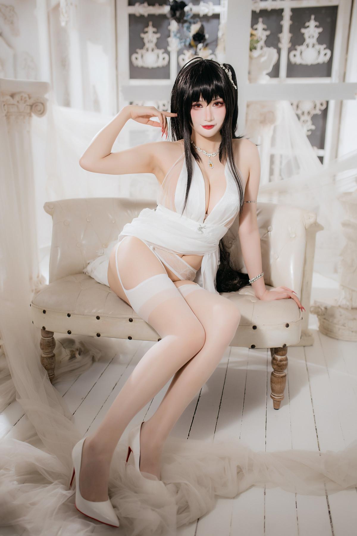 Coser美女兔胖胖min大凤花嫁主题私房性感白色情趣薄纱配白丝吊袜秀惹火身材诱惑写真