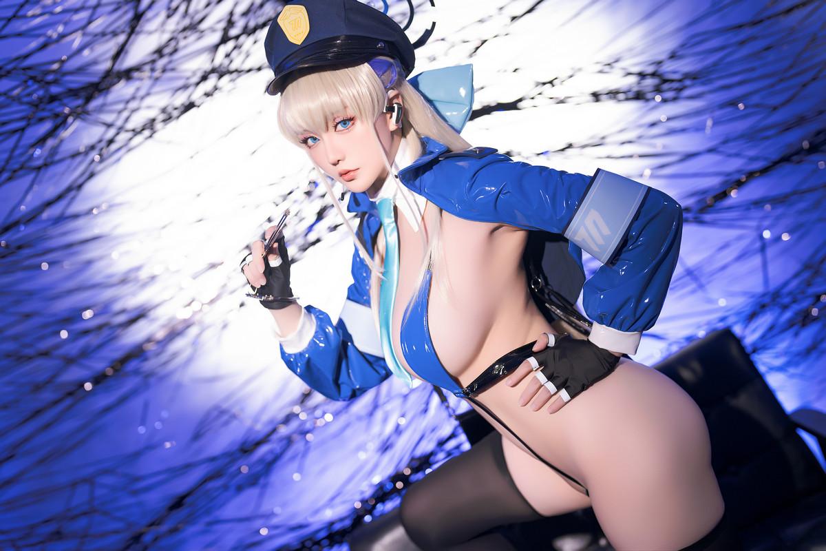 Coser小姐姐星之迟迟飞鸟马时主题性感蓝色情趣连体内衣配黑丝袜秀惹火身材诱惑写真
