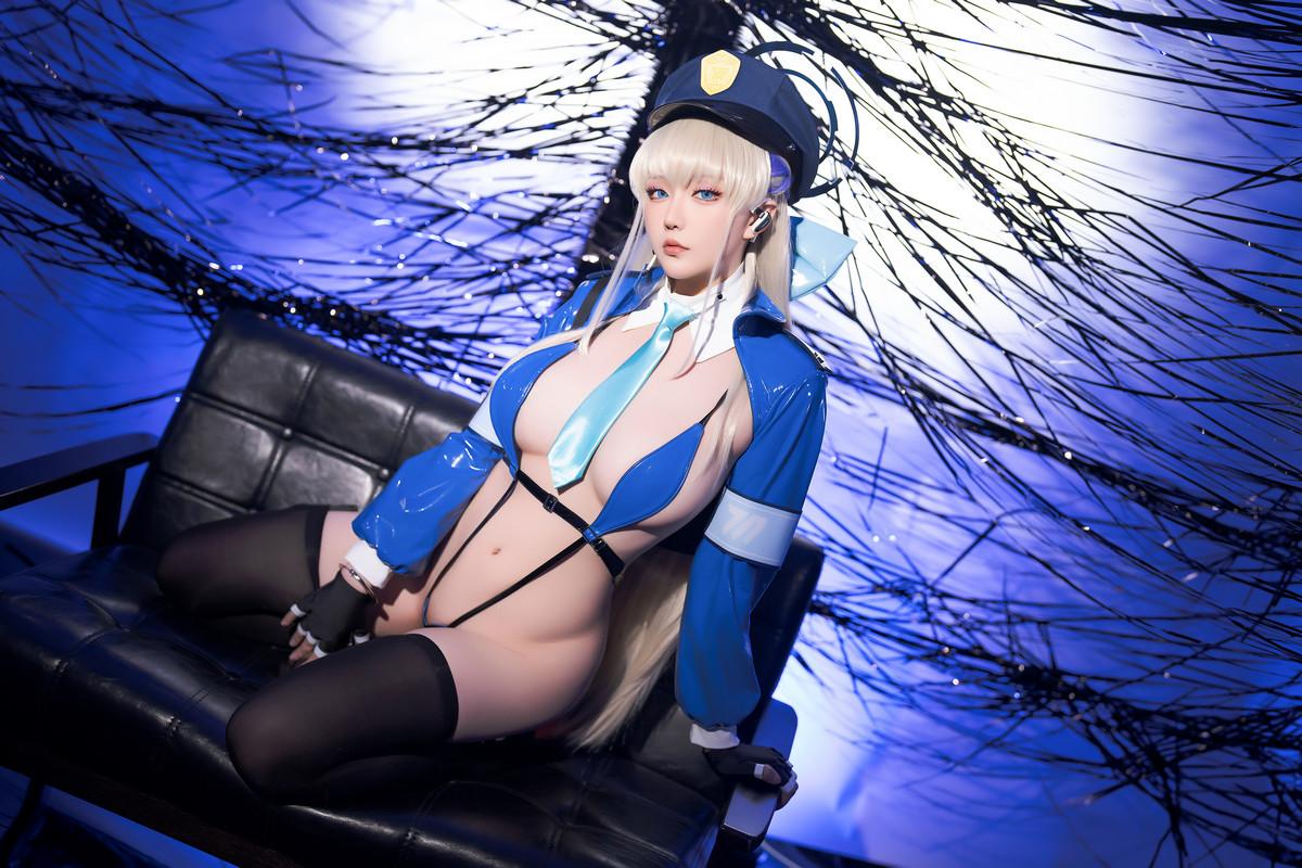 Coser小姐姐星之迟迟飞鸟马时主题性感蓝色情趣连体内衣配黑丝袜秀惹火身材诱惑写真