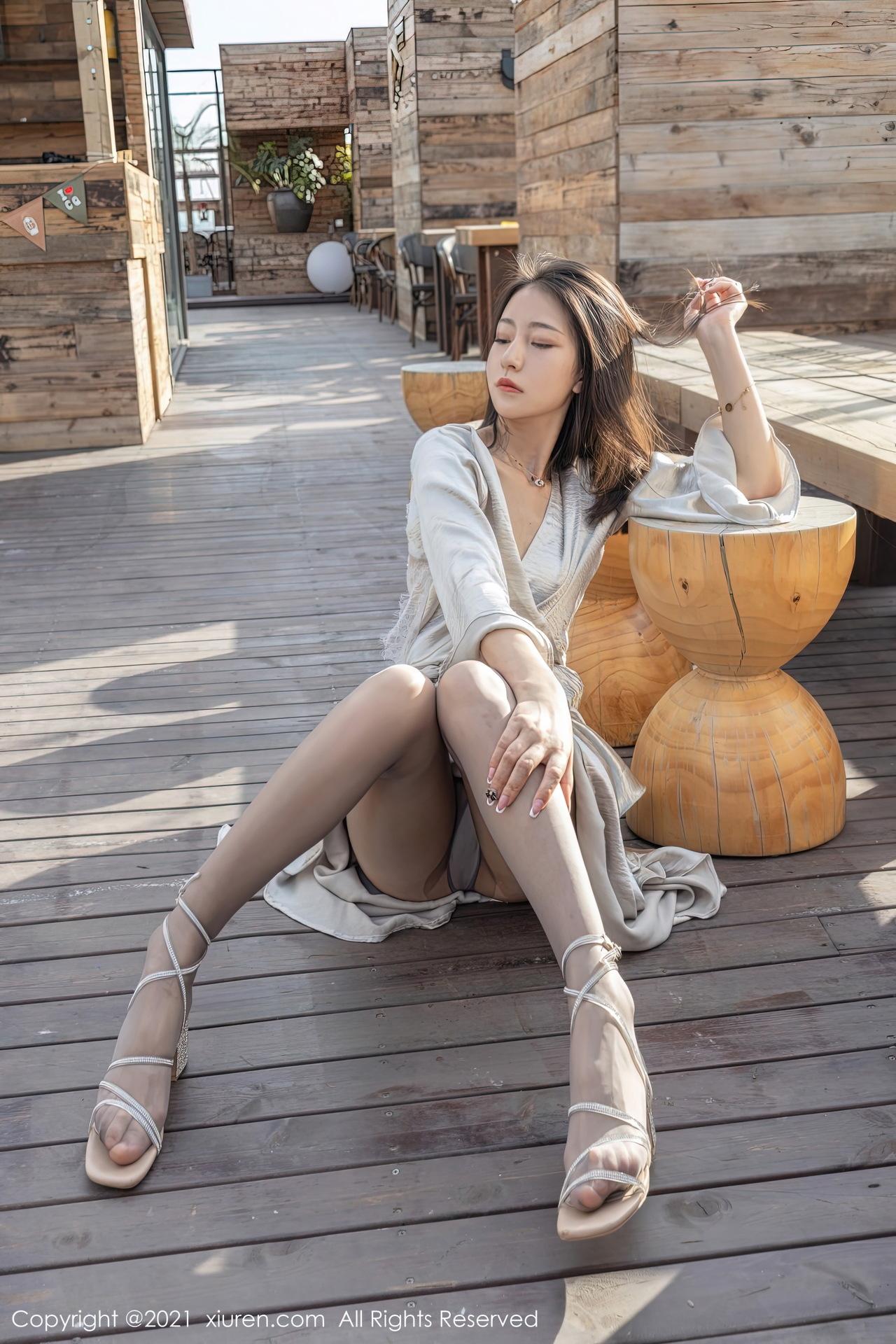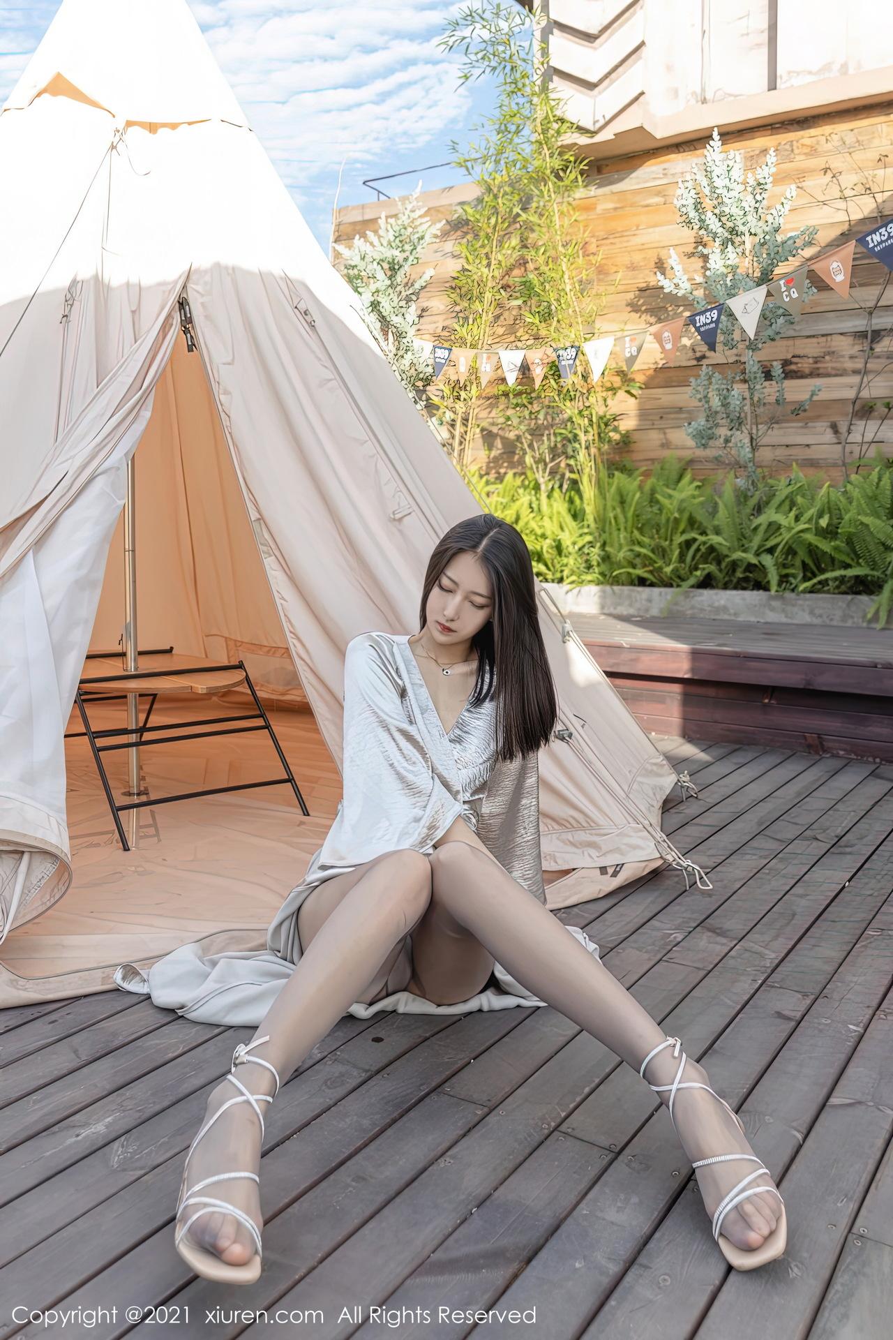 熊小诺 穿著米色礼服在露营区大胆拍大尺写真