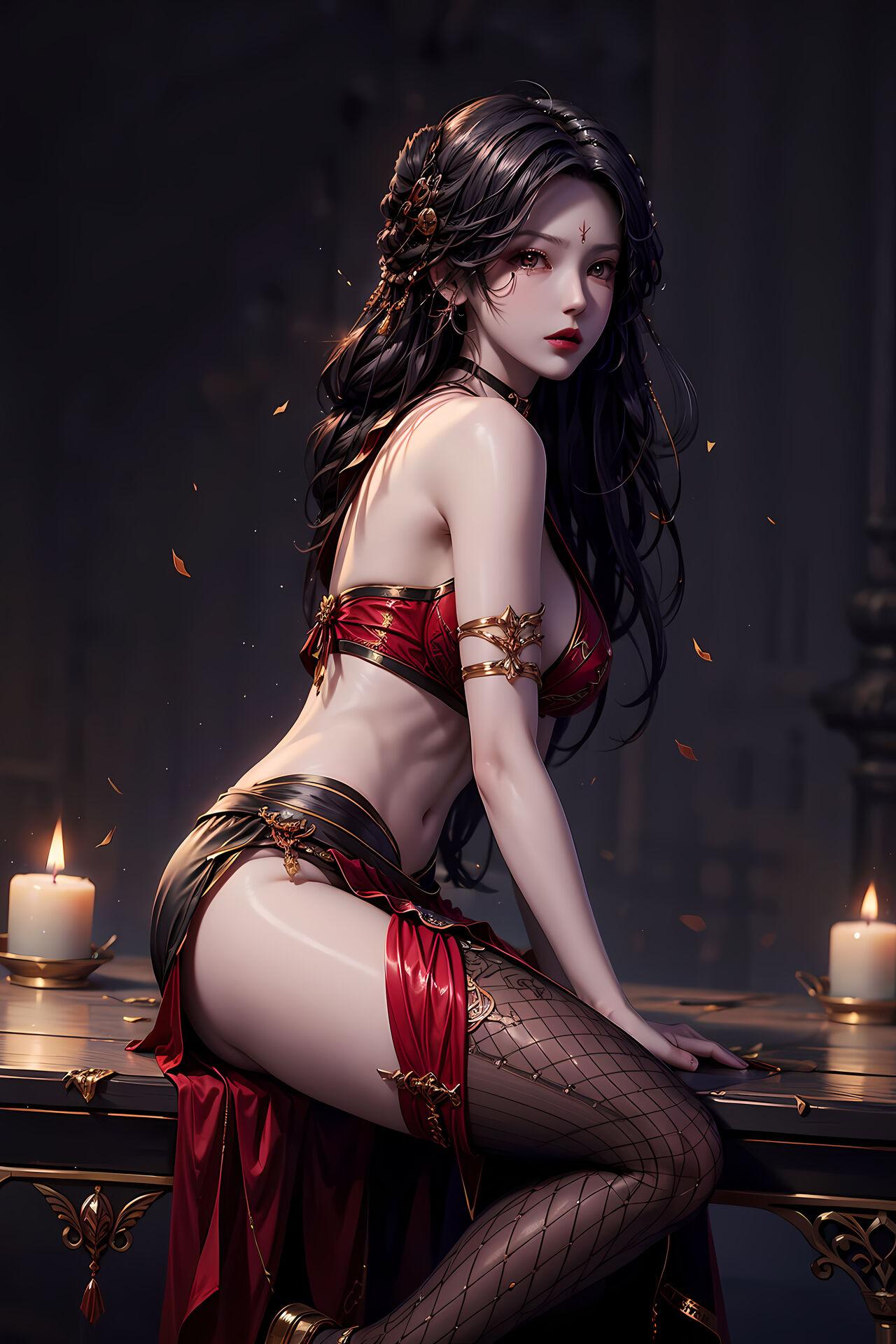 穿著透明纱裙的妹子